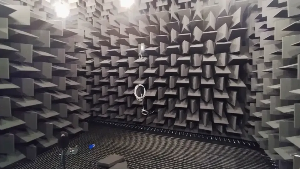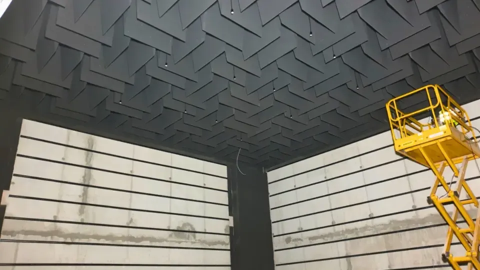 Im Inneren wurden die Wände und Decken mit Polyether-Polyurethan-Keilen ausgekleidet, die den Kammern ihr ikonisches Aussehen verliehen:
