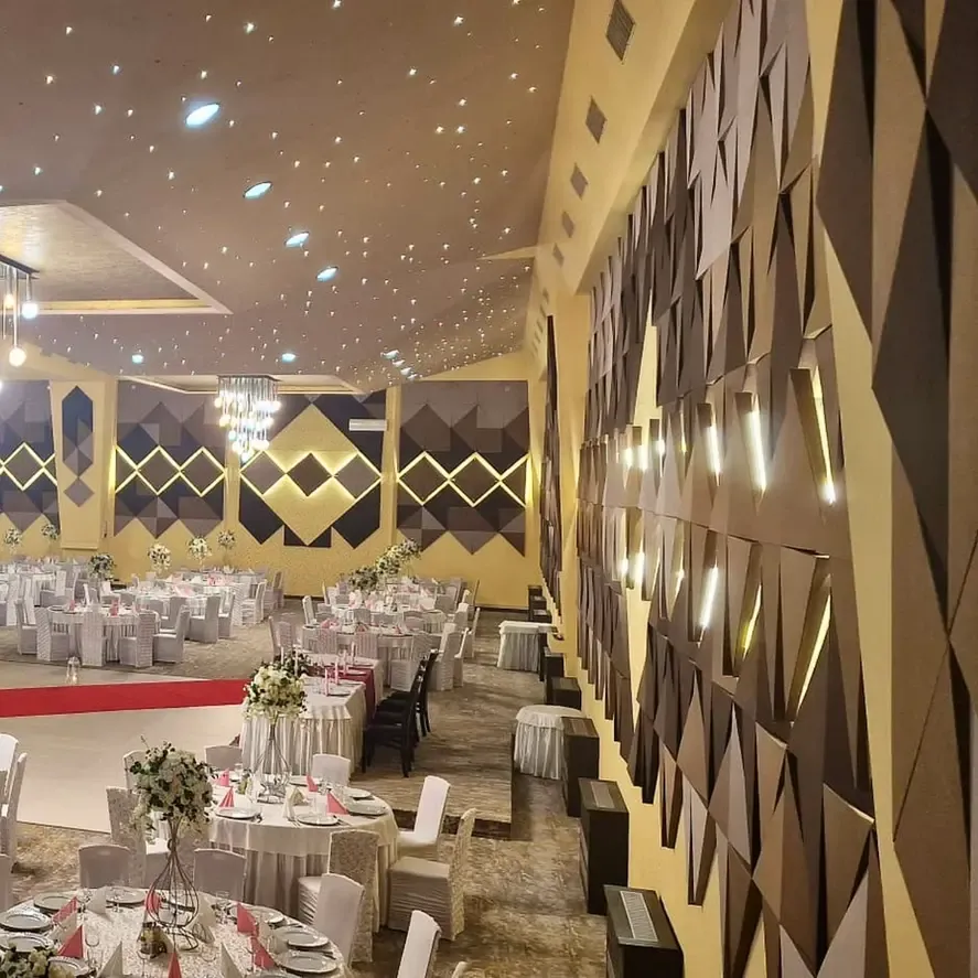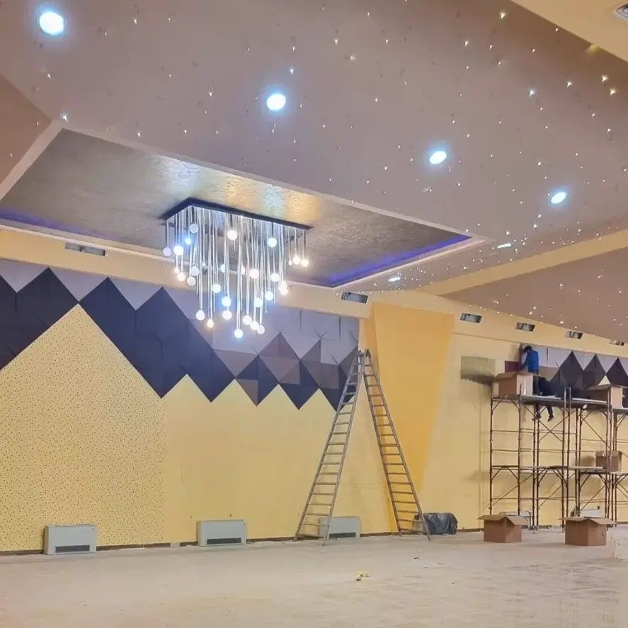 Die durch die akustische Behandlung erreichte Transformation ist in den bereitgestellten Bildern deutlich zu erkennen. Echo- und Nachhallprobleme wurden effektiv gelöst, wodurch die akustische Umgebung des Veranstaltungssaals verbessert wurde. Die Zufriedenheit des Kunden mit den Ergebnissen unterstreicht den Erfolg des Projekts. Darüber hinaus plant der Kunde bereits einen neuen Veranstaltungssaal, was sein Vertrauen in die Akustiklösungen von DECIBEL bekräftigt.