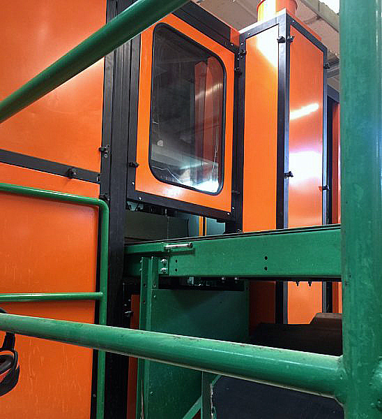- Zwei transparente Schiebetüren ermöglichen dem Maschinenbediener die Überwachung des Betriebs, ohne die Schallisolierung zu verlieren.